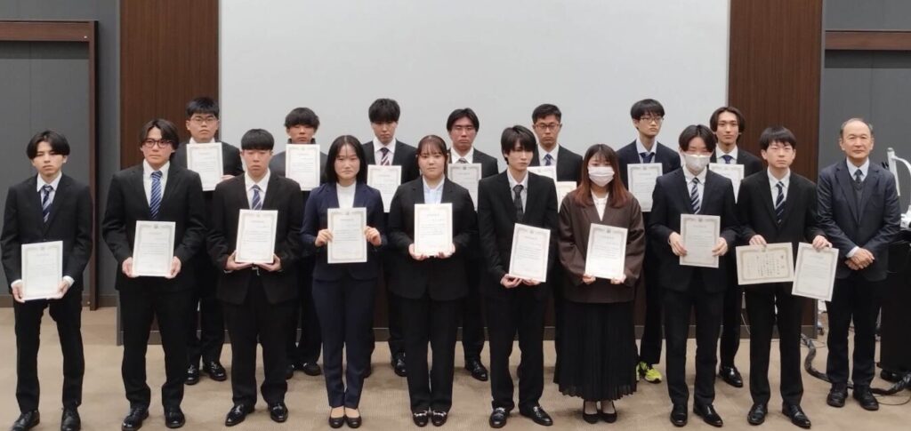 2026年3月18日(水)に工学部研究奨励賞授与式が行われ、片山研究室4年の横山さんが「吉田基金賞」を受賞され、高渕さんが「工学部研究奨励賞」を受賞されました。「吉田基金賞」は電気電子システム学科および情報工学科を卒業する学生の中から学業優秀にして人格円満、且つ将来有望な学生におくられる賞です。横山さんは、あわせて工学部研究奨励賞も同時受賞されました。